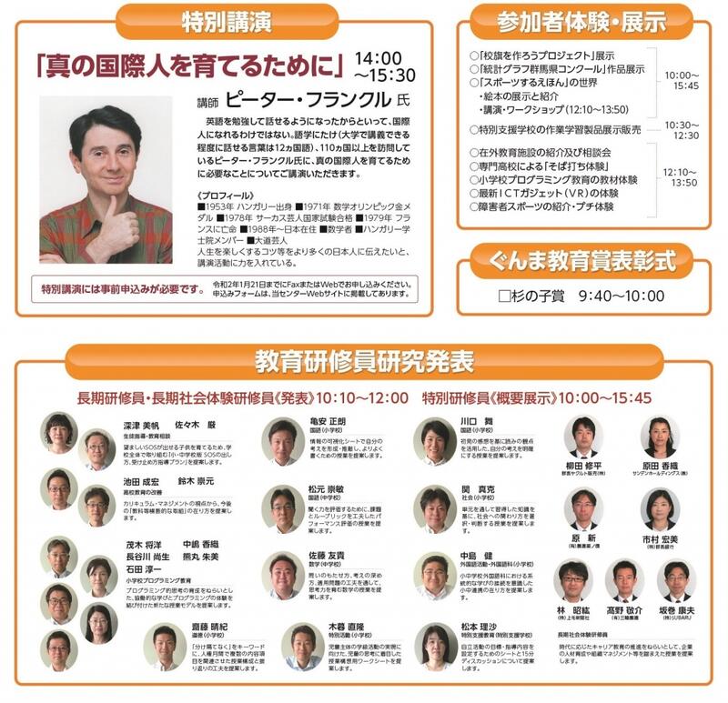 講師の書籍販売及びサイン会も実施します。 〇教育研修員研究発表の日程