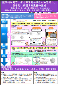 数学的な見方・考え方を働かせながら思考し、数学的に表現する児童の育成 ―児童の考えを数、式、図を関連させて比べる活動と本時の学びのよさを生かして解決する振り返りの設定を通して― |