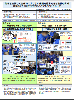 他者と協働して主体的によりよい表現を追求できる生徒の育成 ―音楽表現を創意工夫するためのICTの活用を通して― |