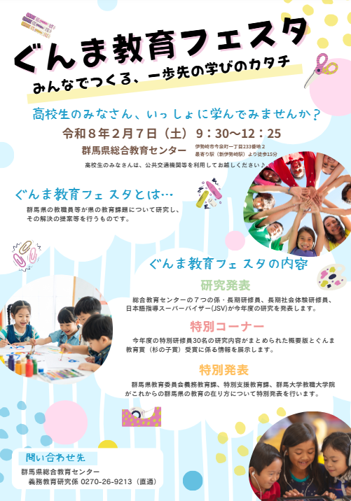 群馬県総合教育センター 義務教育研究係 ℡ 0270-26-9213(係直通)
